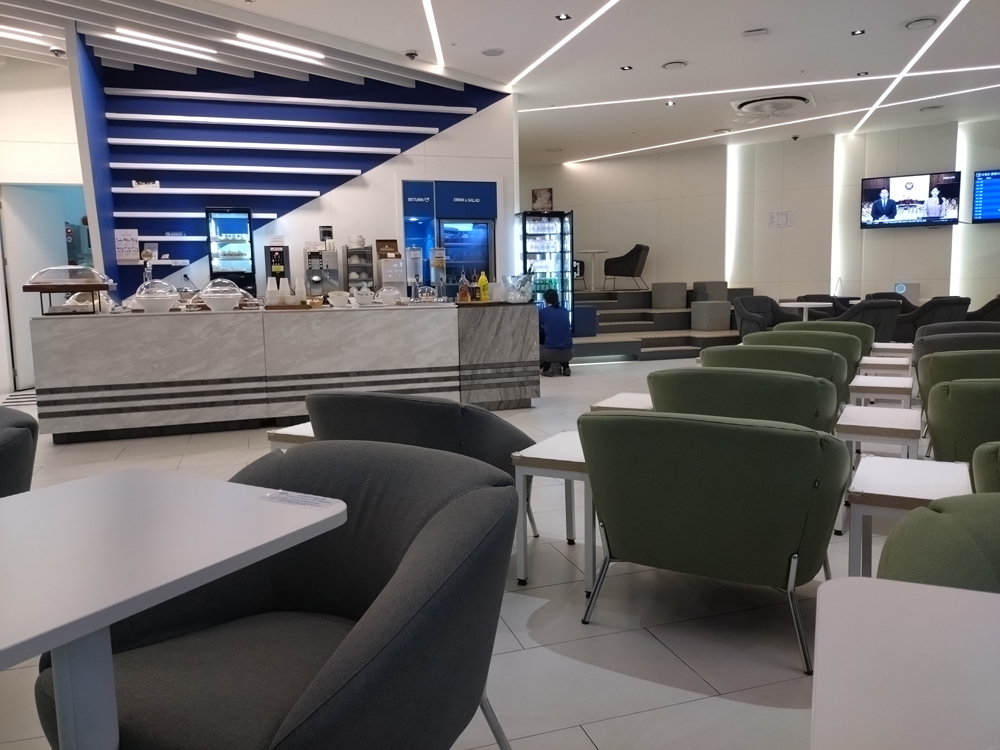 大韓航空のラウンジは調度も落ち着き、食べ物や飲み物も結構充実しています。