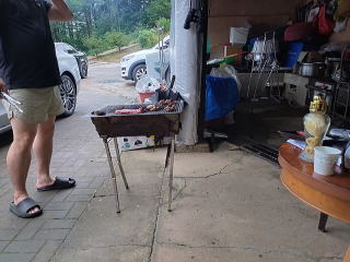 今回は雨模様だったので屋根のある所でバーベキューです。